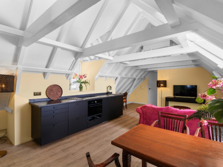 More apartment than hotel room, it comes with an open kitchen that flows into a spacious living area, ideal for kicking back or having a relaxed night in. The bedroom is cleverly tucked behind a floating wall, adding both style and a sense of privacy.