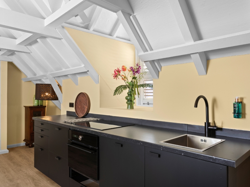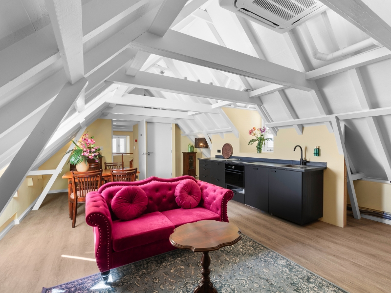 More apartment than hotel room, it comes with an open kitchen that flows into a spacious living area, ideal for kicking back or having a relaxed night in. The bedroom is cleverly tucked behind a floating wall, adding both style and a sense of privacy.