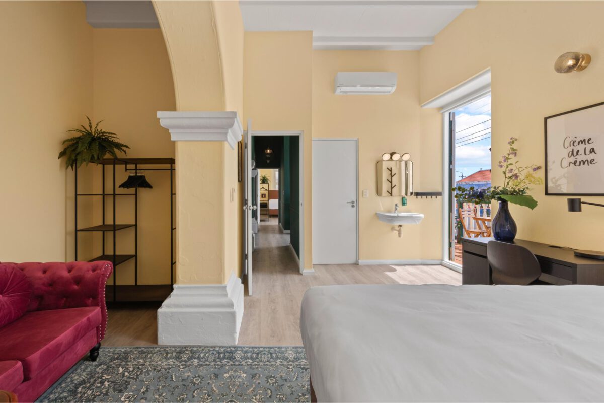 Each X-Large Room is uniquely designed with original features, making it ideal for longer stays. Enjoy plenty of storage and a relaxing seating area, plus windows overlooking either our vibrant neighborhood or garden—so there’s always something to see.